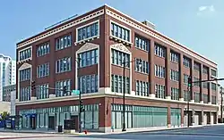 The Maxwell-Briscoe Automobile Company Showroom is a historic automobile showroom located at 1737 S. Michigan Avenue in Chicago's Motor Row District. The showroom was built in 1909 for the Maxwell-Briscoe Motor Company, which was founded in 1904 by Jonathan D. Maxwell and Benjamin Briscoe. William Ernest Walker, a Chicago architect who specialized in large-scale commercial buildings, designed the showroom. The four-story building is divided by brick piers; the ground floor features large plate-glass windows designed to showcase the company's automobiles, while the upper floors feature banks of double-hung and triple-hung windows between the piers. The building uses terra cotta extensively for decoration; a terra cotta stringcourse encircles the building above the first floor, terra cotta pediments and sills frame the window banks, and a terra cotta frieze runs below the roof line. Maxwell and Briscoe used the building as a showroom until 1915; it is one of the oldest surviving auto showrooms on Motor Row.[2]