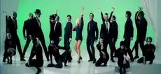 A still showing Bunton (center) accompanied by her dancers in the music video for "Maybe"