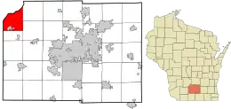 Map of Wisconsin, highlighting the Town of Mazomanie