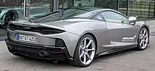 The McLaren GT is a two seat grand tourer designed and manufactured by British automobile manufacturer McLaren Automotive. It is the company's first dedicated grand tourer and is based on the same platform underpinning the 720S with the addition of a carbon fiber rear deck topped by a glazed tailgate creating significantly greater storage capacity.[2]