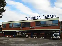 During the late socialist period in the former federal state, MTČ was organized[9] as a "labour organization" (RO) that included several so called "basic organizations of associated work" (OOUR).[10] The information published in the media in that period about the physical volume of production in MTČ said that there were more than 10 million knitted products, 11 million pairs of socks and more than 100 million meters of MTČ's haberdashery products on the market.[11] In its OOURs, the company had plants for the production of raw and finished knitted material (including dyeing) and its storage, as well as modelling workshop (where samples and models of finished products were made), a tailoring department, a sewing unit, a packaging section and a warehouse of finished goods. There were also separate factories for the production of socks, stockings and haberdashery, as well as units for technical and auxiliary work, including maintenance of machines, transport and workers' restaurant.