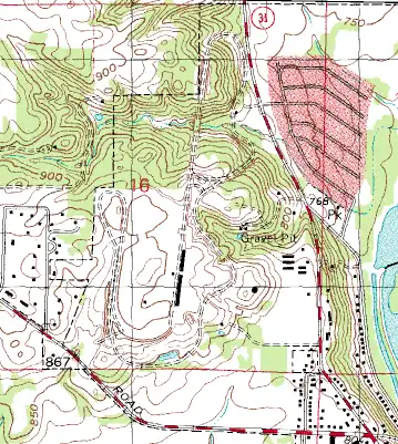 Excerpt from a USGS topological map showing the layout of Meadowdale International Raceway.