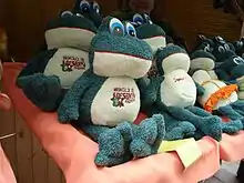 The proverb "Blinks like frog in the Miskolc kocsonya" dates from the nineteenth century. It is based on a legend which describes a careless waiter who didn't realize that a frog had jumped into the kocsonya, which was then left in a cellar in order to congeal. The waiter then served the meat jelly together with the frog which, the legend says, was still blinking. This gave rise to the expression “blinks like a frog in the Miskolc meat jelly”, referring to a glazed look of dumbfounded surprise.[1] After the incident the story was dispersed in the form of postcards and gifts all over the country.
