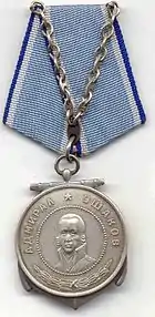 The Medal of Ushakov was a Soviet military award created on March 3, 1944 by decision of the Supreme Soviet of the USSR.[1] It was named in honour of Russian admiral Fyodor Ushakov who never lost a battle and was proclaimed patron saint of the Russian Navy.