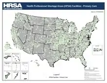 About 20% of Americans live in rural regions, but only nine percent of the country's doctors practice in rural areas.[25] Federal health officials predicted in 2019 that the number of rural doctors, half of them over 50 years of age, would decline by 23 percent during the next ten years.[13] A contributing factor to this decline is newly graduated doctors' reluctance to move to rural areas. While doctors originally from rural areas are more likely to return to rural areas to practice, rural Americans are less likely to attend medical school in the first place.[15] Newly graduated doctors have also tended to prefer jobs in hospitals, rather than jobs in family practices that are more common in rural areas, with only 1% of medical students in their final year of school prefer to live in communities under 10,000.[26]