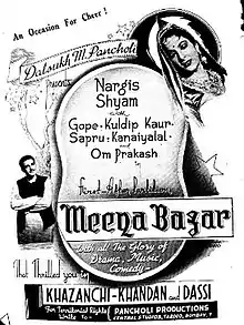 Meena Bazaar is a 1950 Bollywood film directed by Ravindra Dave starring Nargis and Shyam.[2][3]