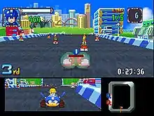 Mega Man: Battle & Chase[lower-alpha 1] is a racing video game based on the original Mega Man series from Capcom. The game was released in Japan on March 20, 1997 and in the PAL region on April 3, 1998 for PlayStation. Although it was not released individually in North America, Mega Man: Battle & Chase was featured on the region-exclusive Mega Man X Collection in 2006. Mega Man: Battle & Chase is a traditional racing game with an emphasis on combat. Winning a race allows the player to choose a car part from an enemy competitor as a prize. Reviews for the game have been mixed with many critics drawing comparisons to Nintendo's Mario Kart series.