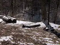 Extensive logging operations on Meigs Mountain began in the 1880s with Knoxville-based entrepreneur John L. English. English selectively logged Blanket Creek for cherry and basswood and moved the logs downstream to a mill in Blount County using a series of splash dams. Although English's operations ceased in the late 1890s after a flood washed away his splash dams, small-scale selective logging continued until the arrival of the Little River Lumber Company around 1908.[5][6]