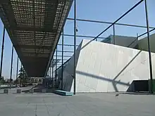 The Melbourne Museum is situated in a precinct adjacent to a large local landmark within a large public park. Contrasted against the neo-classical Royal Exhibition centre, the museum is separated by an events plaza, yet the two are connected underground with a car park.[9] The museum refers to Melbourne's city grid in its planning, and integrates the landscape of Carlton Gardens, housing a Forest Gallery which is situated within the building, and also providing areas of exterior circulation around the building.
