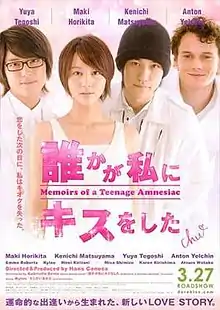 Memoirs of a Teenage Amnesiac (Japanese: 誰かが私にキスをした, Hepburn: Dare ka ga Watashi ni Kisu o Shita, lit. ("Someone kissed me") is a 2010 teen drama film directed by Hans Canosa and based on the 2007 young adult novel of the same name by Gabrielle Zevin. The film stars Maki Horikita, Kenichi Matsuyama, Yuya Tegoshi, and American actor Anton Yelchin.