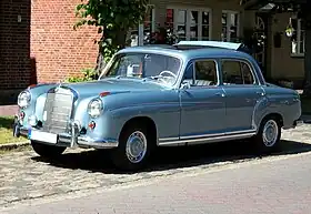 The Mercedes-Benz W128 is a 6-cylinder luxury car produced by Mercedes-Benz from 1958 to 1960 and marketed as the Mercedes-Benz 220 SE. It was available in sedan, coupé, or cabriolet body styles, and it was the last new model of the "Ponton" range which had design and styling roots beginning in 1953 with the Mercedes-Benz 180 sedan (W120 chassis). It was largely identical to its 220 S predecessor, except for having petrol injection, 'Einspritzung' in German, reflected in the additional E in its 220 SE designation.