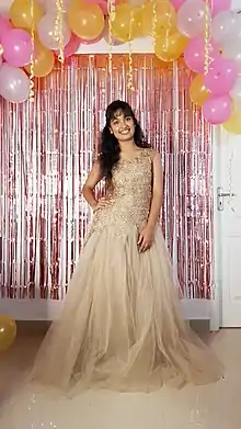 In the meantime she start acting the lead role of Sathya Enna Penkutty on Zee Keralam.[7] This tomboy character made her more popular among the Malayali audience.[8]From 2022 she plays the role of Shalini in Zee keralam series Kudumbashree Saradha.