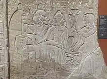 Meryre was an ancient Egyptian official under king Amenhotep III in the 18th Dynasty around 1375 BC. His main title was treasurer. He was therefore one of the most important officials at the royal court, looking after the belongings of the king and the goods of the palace. Meryre is so far only attested in his tomb at Saqqara, that was discovered in the 1980s in the temple area known as the Bubasteum. The tomb is decorated with reliefs. Some of them were already early on cut out of the walls and sold on the art market. Two of these reliefs are now in Vienna (Kunsthistorisches Museum). Old drawings show that they were once in a much better condition.[1] One block depicts Meryre and his wife Baketamun in front of the underworld god Osiris and in a second register in front of Ra-Horachte. The other fragment shows Meryre and his wife in front of an offering table in the upper register. In the lower register he is shown together with the king's son Siatum, who is sitting on his lap. Meryre was evidently the tutor of this king's son. The father of Siatum is not mentioned and it was most likely Thutmose IV (the father of Amenhotep III under whom Meyre served).