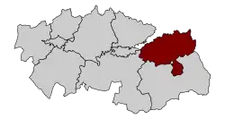 The comarca consists of 1,453.49 km2, and contains the following municipalities: Cabañas de Yepes (17.97 km2), Ciruelos(22.94 km2), Dosbarrios (111.59 km2), La Guardia (195.59 km2), Huerta de Valdecarábanos (83.00 km2), Noblejas (69.67 km2), Ocaña (147.91 km2), Ontígola (41.49 km2), Santa Cruz de la Zarza (264.54 km2), Villarrubia de Santiago (155.29 km2), Villasequilla (76.95 km2), Villatobas (181.58 km2), and Yepes (84.97 km2).