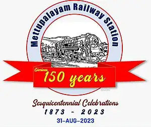 Logo for the 150th year celebration of Mettupalayam Railway STation