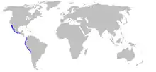 Mexican hornsharks are distributed throughout the coast of the Eastern Pacific, mainly around southern Baja California, and possibly as far south as Peru. The rocky bottoms, coral reefs, and sandy areas of the littoral zone create the habitat of this hornshark. The Mexican hornshark can be found at a maximum depth of 50 m, but is usually found down to 20 m.[3]