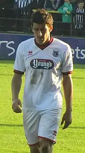 Coulson returned to training in early November before making his return to action later that month, scoring in a reserve-team match against Grimsby Town.[37][38] His first-team return came on 22 November 2008 after entering Barnsley's 2–1 defeat away to Preston North End as a 90th-minute substitute.[39] However, a recurrence of his knee injury in January 2009 ruled him out of action for the rest of 2008–09, which he finished with three appearances.[40][41] On 16 October 2009, Coulson signed a one-month loan deal with Conference Premier club Chester City, making his debut the following day against Gateshead in a 1–0 home victory.[42][43] He scored his first goal for Chester on 7 November 2009 in a 3–1 away win over Grays Athletic.[44] After Chester failed in an attempt to extend his loan he returned to Barnsley in November 2009, having scored one goal from five appearances.[45][46] However, these were later removed from the records after Chester were expelled from the Football Conference the following February as a result of the club breaching five league rules.[47][48]