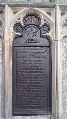 Hicks-Beach named on the Freemasons' War Memorial at Gloucester Cathedral