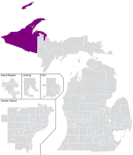 Michigan's 110th House of Representatives district (also referred to as Michigan's 110th House district) is a legislative district within the Michigan House of Representatives located in part of Dickinson County, as well as all of Gogebic, Houghton, Iron, Keweenaw, and Ontonagon counties.[3] The district was created in 1965, when the Michigan House of Representatives district naming scheme changed from a county-based system to a numerical one.[4]