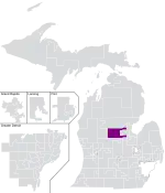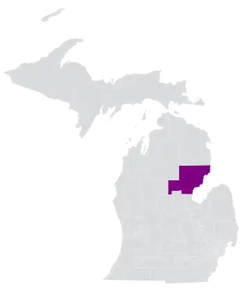 Michigan's 99th House of Representatives district (also referred to as Michigan's 99th House district) is a legislative district within the Michigan House of Representatives located in parts of Bay, Clare, and Gladwin counties, as well as all of the Arenac, Iosco, and Ogemaw counties.[3] The district was created in 1965, when the Michigan House of Representatives district naming scheme changed from a county-based system to a numerical one.[4] The district lines were redrawn to now consist of Iosco, Ogemaw and Arenac counties in their entirety and portions of Bay, Clare and Gladwin counties.