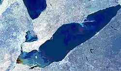 NOAA MERIS image of large cyanobacterial bloom confirmed as M. aeruginosa[4]