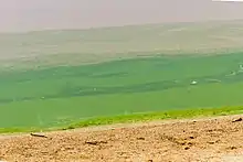 Algal blooms of cyanobacteria thrive in the large phosphorus content of agricultural runoff. Besides consuming phosphorus, M. aeruginosa thrives on glyphosate, although high concentrations may inhibit it.[24] M. aeruginosa has shown glyphosate resistance as result of preselective mutations, and glyphosate presence serves as an advantage to this and other microbes that are able to tolerate its effects, while killing those less tolerant.[25] In contrast research in Lake Erie has suggested that glyphosate may lead to blooms of another cyanobacterium - Planktothrix - in place of Microcystis.[26]