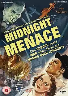 Midnight Menace is a 1937 British thriller film directed by Sinclair Hill and starring Charles Farrell, Margaret Vyner, Fritz Kortner and Danny Green. The screenplay concerns an international arms manufacturing firm's plans to start a war in Europe by bombing London.[1] It was released in the United States as Bombs Over London.
