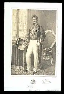 ![]() Portrait of Miguel Tacón, lithography of Luis Carlos Legrand for the work of Pedro Chamorro y Baquerizo Estado Mayor General del Ejército Español. Biblioteca Nacional de España. | |