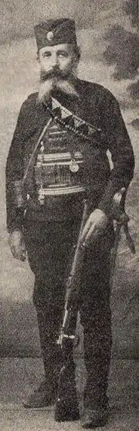 Mihailo Ristić-Džervinac (Serbian Cyrillic: Михаило Ристић-Џервинац; c. 1854–1916) was a Serbian officer, co-conspirator of the May Coup, and chief of the Upper Staff of East Povardarie during the Serbian Chetnik operations in Old Serbia and Macedonia in the beginning of the 20th century.