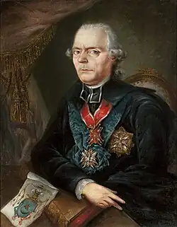 Mikalojus Tiškevičius (1721 6 December 1796 in Vilnius) was a boyar, nobleman, Graf of the Leliwa coat of arms, canon, state and military figure of the Grand Duchy of Lithuania and the Polish–Lithuanian Commonwealth.[1][2] He owned the Liubavas Manor in Liubavas, in the northern part of Vilnius.[2][3][4]