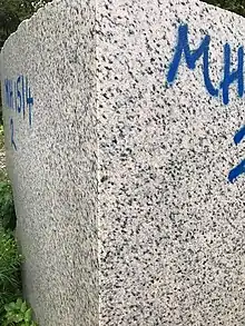 Milford pink granite, also known as Milford granite or Milford pink is a Proterozoic igneous rock located in and around the town of Milford, Massachusetts, covering an area of approximately 39 square miles (100 km2), as mapped by the USGS. It is also sometimes referred to as Braggville granite, for several quarries in the neighboring village of Braggville, Massachusetts.[2]