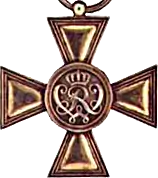 The Military Merit Cross (German: Militär-Verdienstkreuz) was the highest bravery award of the Kingdom of Prussia for non-commissioned officers and enlisted soldiers. It was also known as the Golden Military Merit Cross (Goldenes Militär-Verdienstkreuz) to distinguish it from the Military Decoration 1st Class (Militär-Ehrenzeichen I. Klasse), a lesser Prussian enlisted bravery decoration which was an identical cross but in silver. The Military Merit Cross came to also be known as the "Pour le Mérite for non-commissioned officers and enlisted men" (Orden Pour le Mérite für Unteroffiziere und Mannschaften), after the Pour le Mérite, Prussia's highest military decoration for officers.