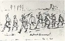 The List Regiment fought in many battles, including the First Battle of Ypres (1914), the Battle of the Somme (1916), the Battle of Arras (1917), and the Battle of Passchendaele (1917).[18] During the Battle of Fromelles on 19–20 July 1916 the Australians, mounting their first attack in France, assaulted the Bavarian positions. The Bavarians repulsed the attackers, who suffered the second-highest losses they had on any day on the Western Front, about 7,000 men.[19] The history of the List Regiment hailed this brilliant defense as the "personification of the German Army on the Western Front".[20]