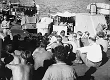 Between 1960 and 1962, Indonesia continued its policy of confrontation against the Netherlands for the control of West New Guinea, combining diplomatic, political, and economic pressure with limited military force.[55] The final stage of the Indonesian Confrontation also involved a planned military invasion of the territory. The Indonesians also secured military weapons and political support from the Soviet Union, which induced the United States to intervene in the conflict as a third-party mediator between Indonesia and the Netherlands.[56] Throughout 1960, Indonesian armed forces launched several infiltrations into West New Guinea. On 19 December 1961 Indonesian President Sukarno decreed the establishment of the Operation Trikora or Tri Komando Rakyat with the objective of 'liberating' West New Guinea by 1 January 1963.[57][58][59] During the ensuing Vlakke Hoek incident, one of Indonesian torpedo boats was sunk while the remaining two boats were forced to retreat.[60] Many Indonesian crew members and embarked marines being killed and 55 survivors taken prisoner. Among the casualties was Commodore Yos Sudarso, the deputy chief of the Indonesian Navy Staff.[61]