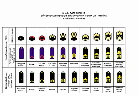 - ↑ Ponomarenko, Illia (17 October 2019). "Rada approves new ranks, NATO-style amendments to military instructions". kyivpost.com. Businessgroup LLC. Kyiv Post. Retrieved 7 December 2019.