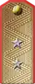 The corps colours that were introduced in 1935, remained in use with minor changes. The padding of the newly introduced shoulder straps were made from wool cloth, designed in branch of service colours with piping. Command staff wore silver or gold stars and characteristic metallic branch badges.
