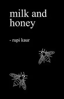Milk and Honey (stylized in all lowercase as "milk and honey") is a collection of both abstract fiction and non-fiction poetry and prose by Indian-Canadian poet Rupi Kaur. The collection's themes feature aspects of survival, feminism and relationships, and is divided into four sections, with each section serving a different purpose and relevance to Kaur’s personal experiences. The sections further explore the themes of violence, abuse, love, loss, and femininity, accompanied by simple line art illustrations.[1] These sections are titled "the hurting", "the loving", "the breaking" and "the healing".[2] Kaur has cited her cultural background as an inspiration for the book's style, as well as an attempt to make the book more accessible to a wide demographic or readers.[3] The book's simplistic style and themes have drawn forth some negative criticism and alleged rumours about Kaur herself.[4] Critics have sometimes referred to Kaur's work as "Instapoetry" due to Kaur's usage of social media platform Instagram to market her poems and illustrations.[5]