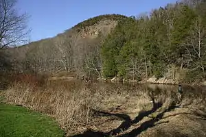 Mill River, Hamden, Connecticut. Sleeping Giant Mountain in background.
