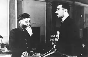 Miloš Glišić (right) and Draža Mihailović at Belgrade Process, 1946