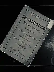 Milton A. Dalton (b. unknown - d. January 18, 1895) of Cincinnati was an American time lock inventor and one of the founders of the Consolidated Time Lock Co. In 1873 he was commissioned by Joseph L. Hall of the Hall's Safe & Lock Co. to interview safe makers and obtain sworn statements from employees to create the ultimate resource and history of the construction of safes and vaults entitled: History of Fire & Burglar Proof Safes, Bank Locks, and vaults in American and Europe – Useful Information for Bankers, Business Men and Safe Manufacturers. A limited run of 66 copies was printed in 1874, of which, only two are known to remain today. It has been described as "one of the boldest and broadest acts of corporate espionage ever."[1]