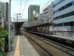 Minamikata Station (南方駅, Minamikata-eki, station number: HK-61) is a train station on the Hankyu Kyoto Line located in Yodogawa-ku, Osaka, Japan. It also serves as an interchange for Nishinakajima-Minamigata Station on the Osaka Municipal Subway Midosuji Line.