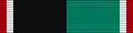 In addition to the full-sized medal, awardees also receive a certificate, miniature medal, ribbon bar, lapel pin, and rosette. The ribbon is made up of two thick stripes of black and green, bordered by thin stripes of white and red. On the full-sized medal, the ribbon is arranged as an Austrian trifold, while on the miniature medals, it is arranged as a drape. The medal is a 40 mm bronze circular medallion, featuring on the obverse a Maltese cross with outgoing rays, framed by a laurel wreath, and superimposed by a crossed hammer and pick, the traditional symbol of miners. On the reverse is the Austrian Coat of Arms, with the inscription "Für Verdienste im Grubenrettungsdienst" (English:For merits in mine rescue service).[4]