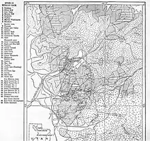 Furthermore, mining districts often contained a "crazy patchwork" of mining claims, many of which had "complicated irregular boundaries."[5] Historic mining districts, which over time would develop smelting or processing facilities, extensive rail infrastructure, housing for miners, and an assortment of services for the community, are described as being organized like massive region-wide outdoor factories with all the machinery exposed to the sky.[5]