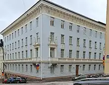 Building of the Finnish Ministry of Education and Culture on the intersection of Meritullinkatu and Rauhankatu streets in Helsinki.