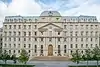 The Ministry of Finance is the central executive power body within the borders of the Republic of Azerbaijan which implements the financial policy of the state and arranges the controlling of state finance. According to Decree 48 of February 9, 2009 of the President of the Republic of Azerbaijan, the ministry carrying out its duties. Ministry's apparatus, State Financial Control Service, Public Debt Management Agency, State Insurance Control Service, State Treasury Agency, State Service controlling Precious Metals and Stones, local agencies and other subordinate departments of the Ministry and the corresponding institution of the Autonomous Republic of Nakhchivan constitute the system the Ministry of Finance. Based on  Decision 55 of April 6, 2010 of the Cabinet of Ministers of the Republic of Azerbaijan, the ministry does not involve Data Centre and ‘Finance and Accounting Magazine Editorial Office’ LLC, Financial Science and Education Center which are considered as the dependent bodies of the Ministry of Finance.[3] The ministry is headed by the minister and two deputy ministers.[2] Functions of the ministry are improvement of state policies on finance, budgeting and taxes; ensuring stability of state finances and development of financial markets in the country; attracting foreign creditors to Azerbaijani economy; improvement of budgeting, tax forecasting, financial mechanisms; ensuring financial control over budgetary funds and spending; provision of state budget funds management and controlling movement of funds within Azerbaijan.[4]