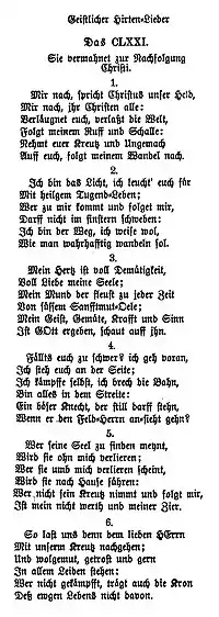 - ↑ "Mir nach, spricht Christus, unser Held". liederdatenbank.de (in German). Archived from the original on 15 August 2022. Retrieved 24 September 2023.