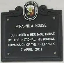 The Mira-Nila House is a historic mansion building in Quezon City, Metro Manila, Philippines. Situated along Mariposa Street in Cubao, the building owned by the Benitez family is a declared Heritage House by the National Historical Commission of the Philippines,[1] and one of the only two such declared houses in Metro Manila along with the Lichauco Heritage House in Santa Ana, Manila. The building currently houses a museum.[2]