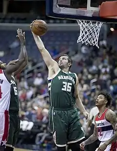 On July 8, 2016, Teletović signed a three-year, $30 million contract with the Milwaukee Bucks.[31][32] On November 5, 2016, he scored 22 points and matched his career high with seven three-pointers in a 117–91 win over the Sacramento Kings.[33] Teletović saw an expanded role in the wake of Michael Beasley sustaining a knee injury in late February 2017.[34] However, Teletović sustained a slight hamstring injury in March 2017,[35] but returned quickly and saw expanded minutes.[36]