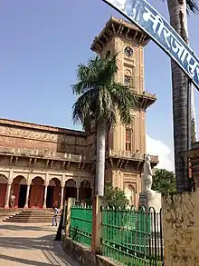 - ↑ @uptourismgov (10 January 2021). "The famous Clock Tower of #Mirzapur is a beautiful architecture with subtle carvings on sandstone. Constructed in 1891, it has a 1000 kg alloy bell hanging from the tall structure. Plan a visit and don't forget to take pictures" (Tweet). Retrieved 14 January 2021 – via Twitter.
