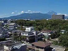 Mount Ashitaka and Mount Fuji seen from downtown of Mishima